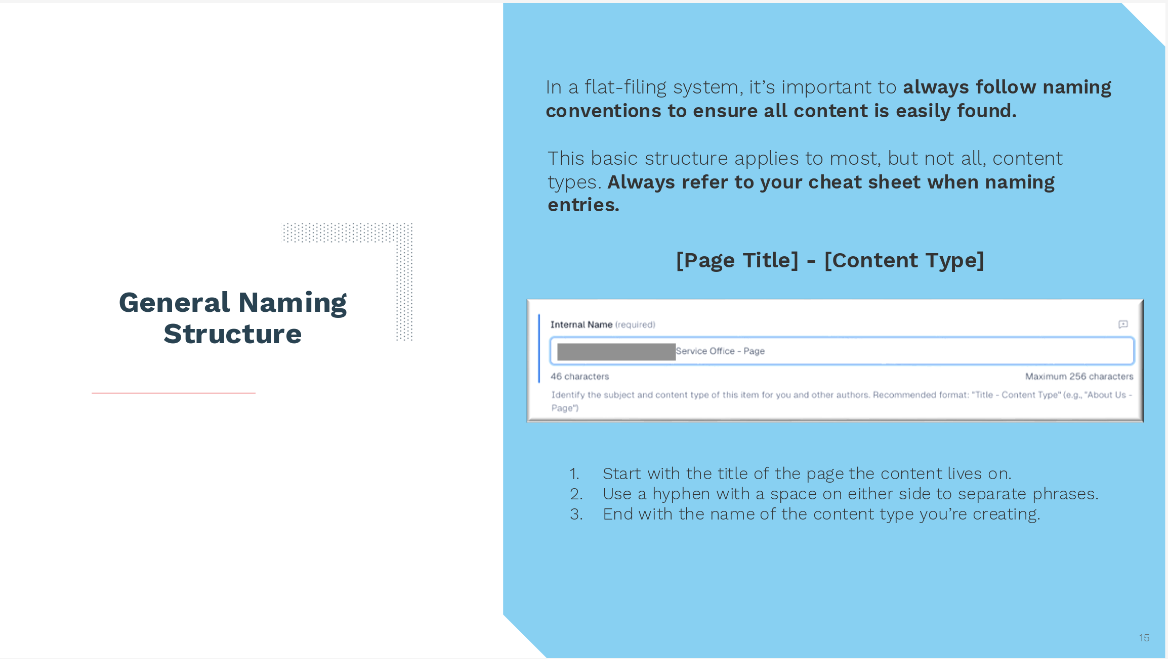 System Governance: I created and maintained strict naming conventions and validation rules for each content type, preventing future "content debt" and ensuring long-term system health.